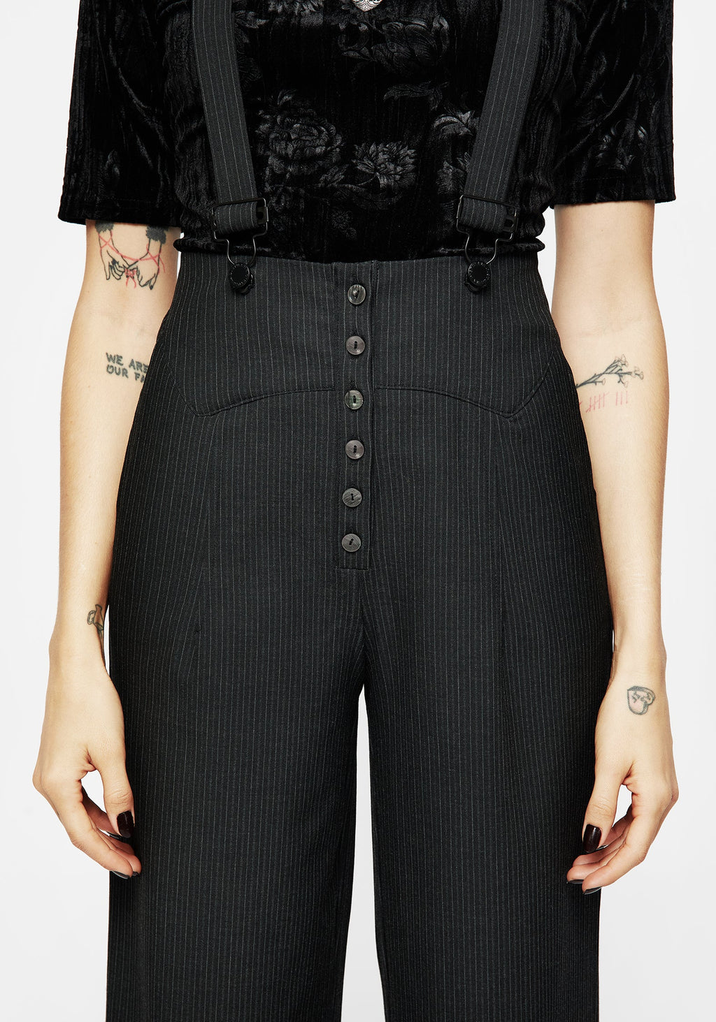 Tilda Hoch Taille Weit Bein Nadelstreifen Hosenträger Hosen