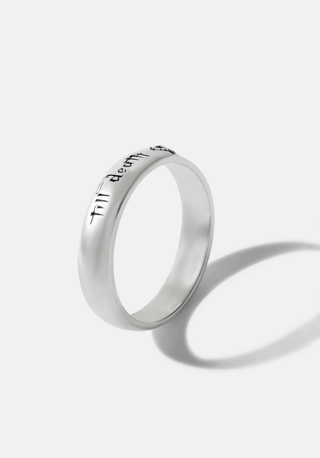• Sterling Silver Ring with ‘Till Death’ Engraving & Black Spinel Stones