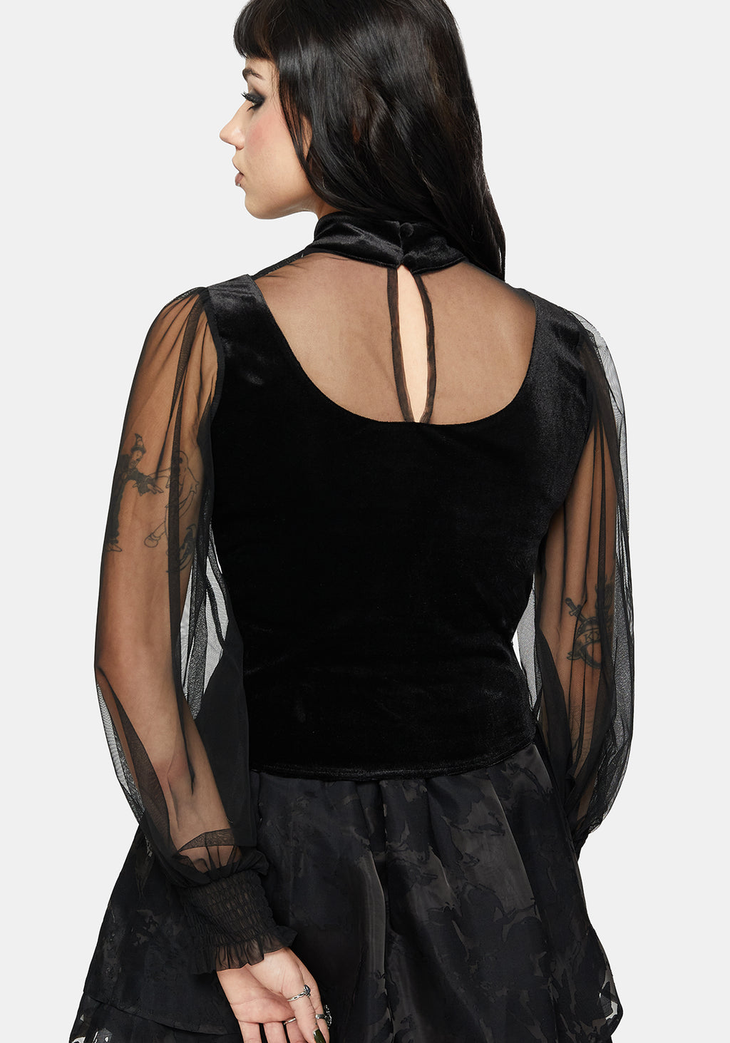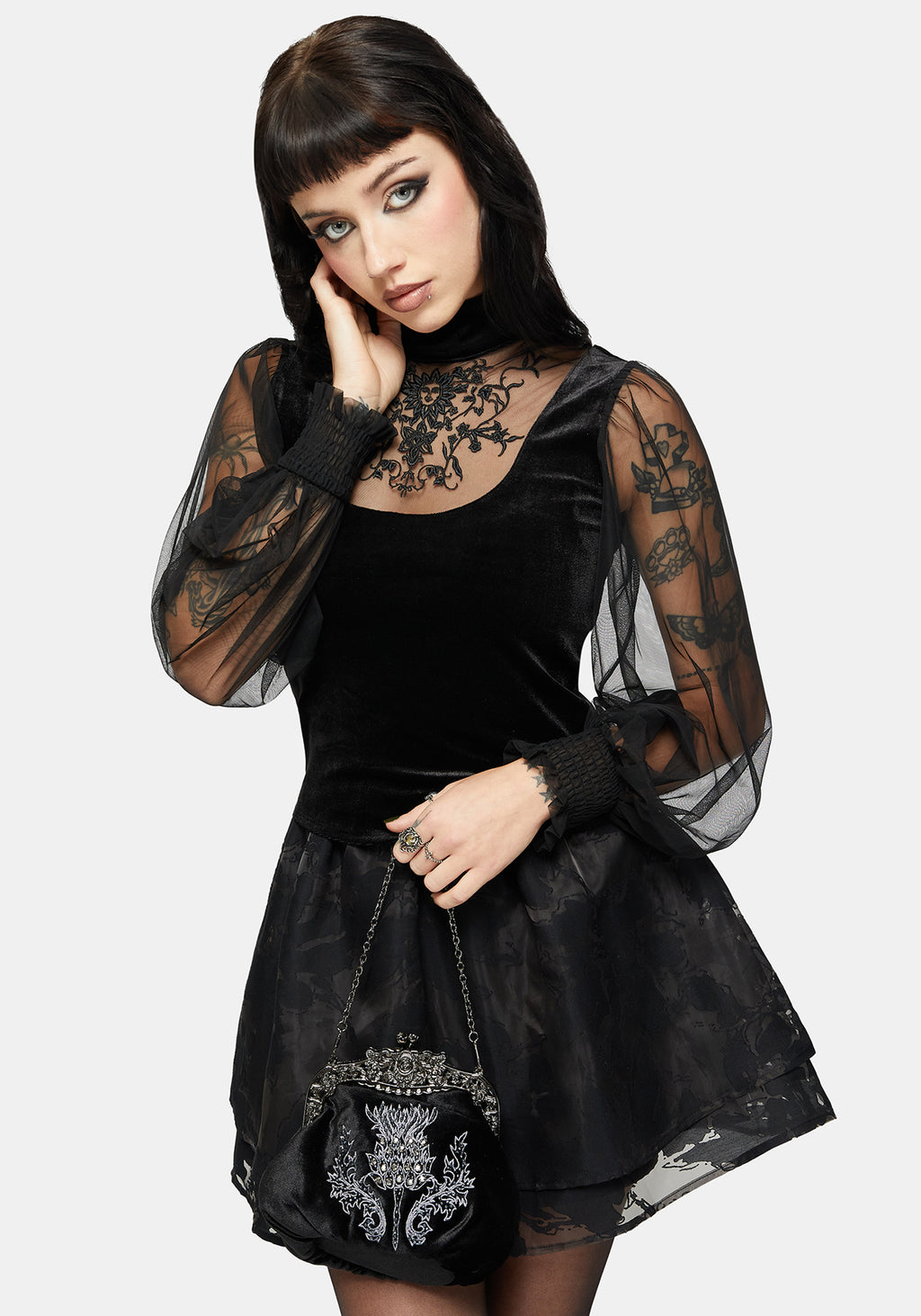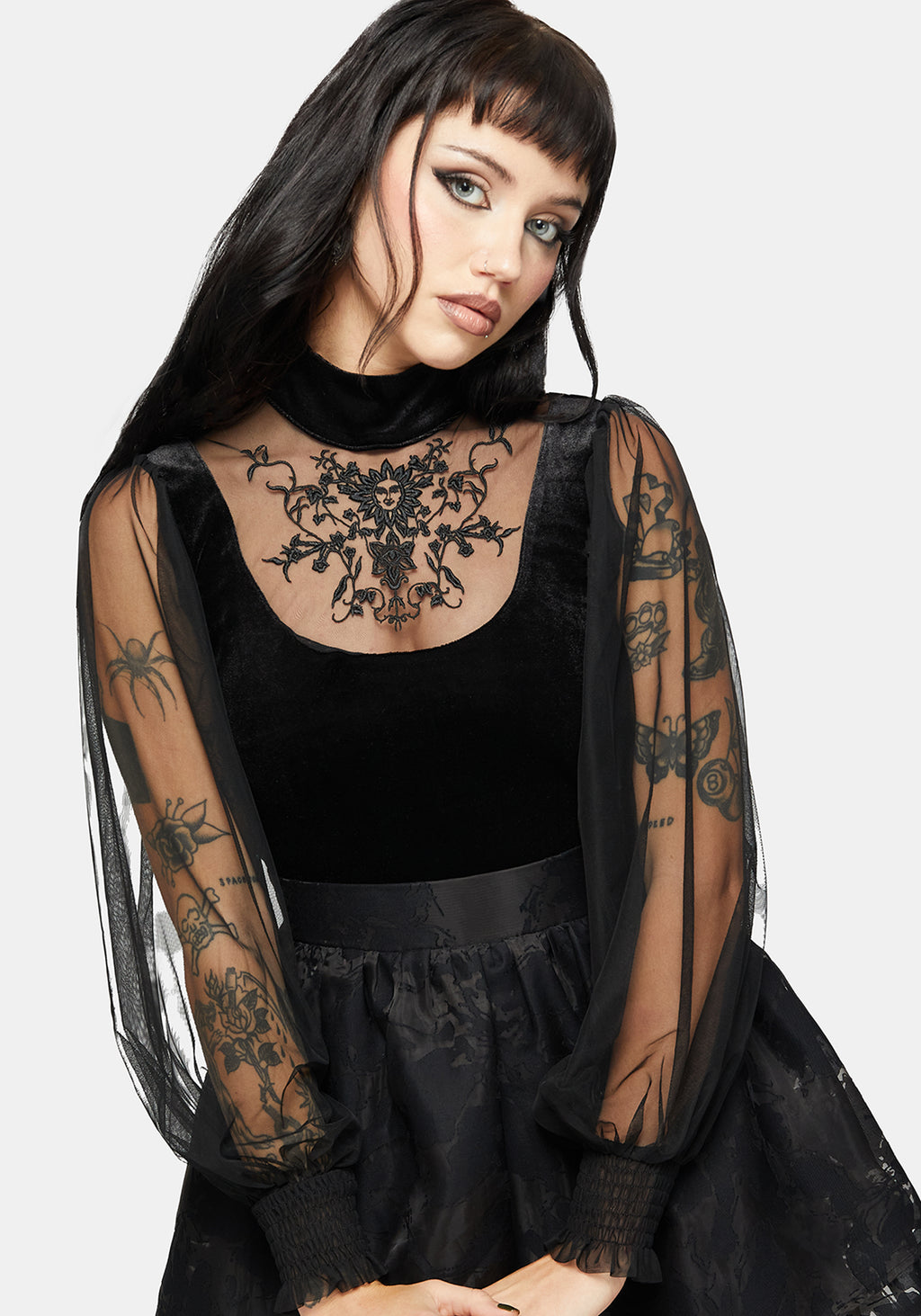 • Black Velvet & Mesh Embroidered Top